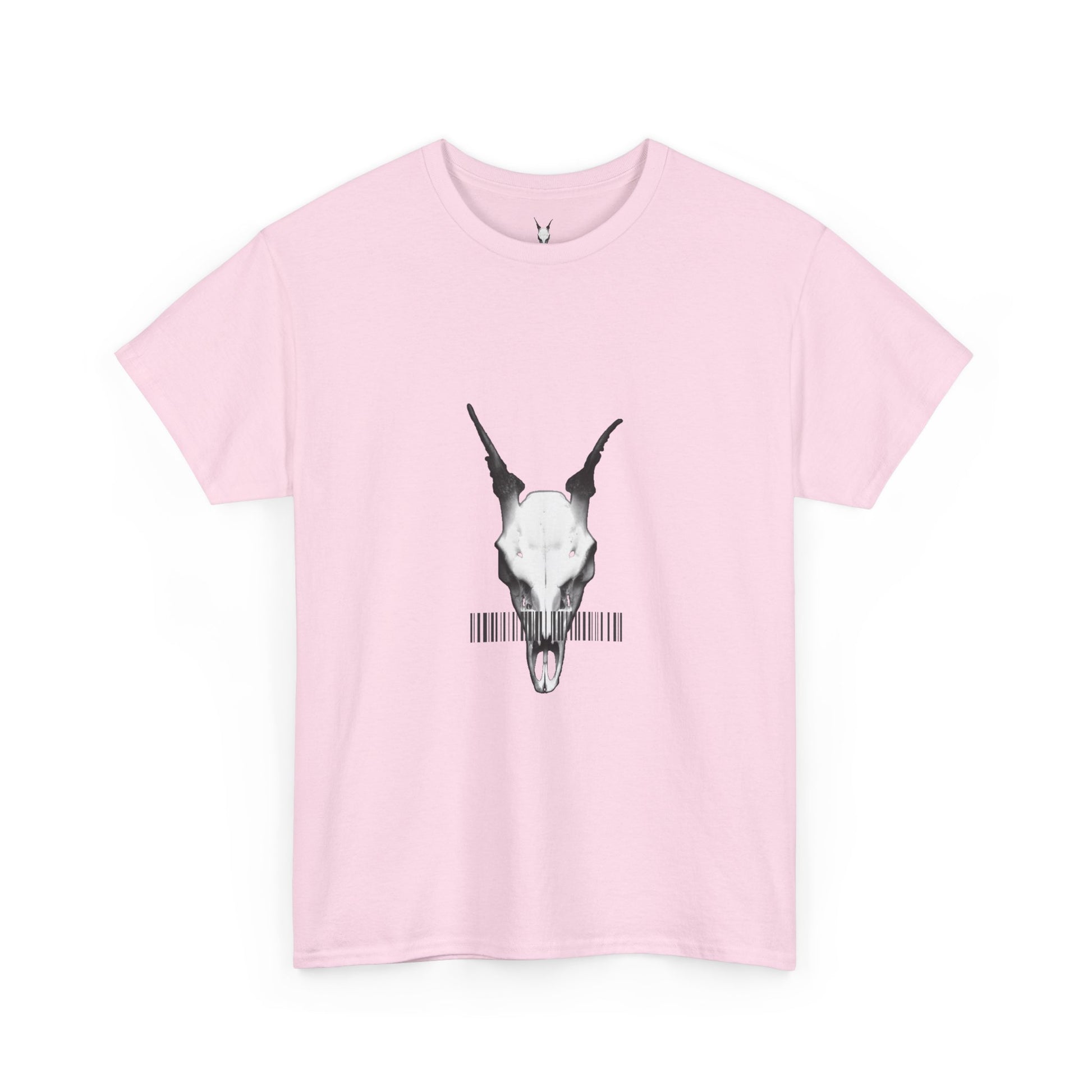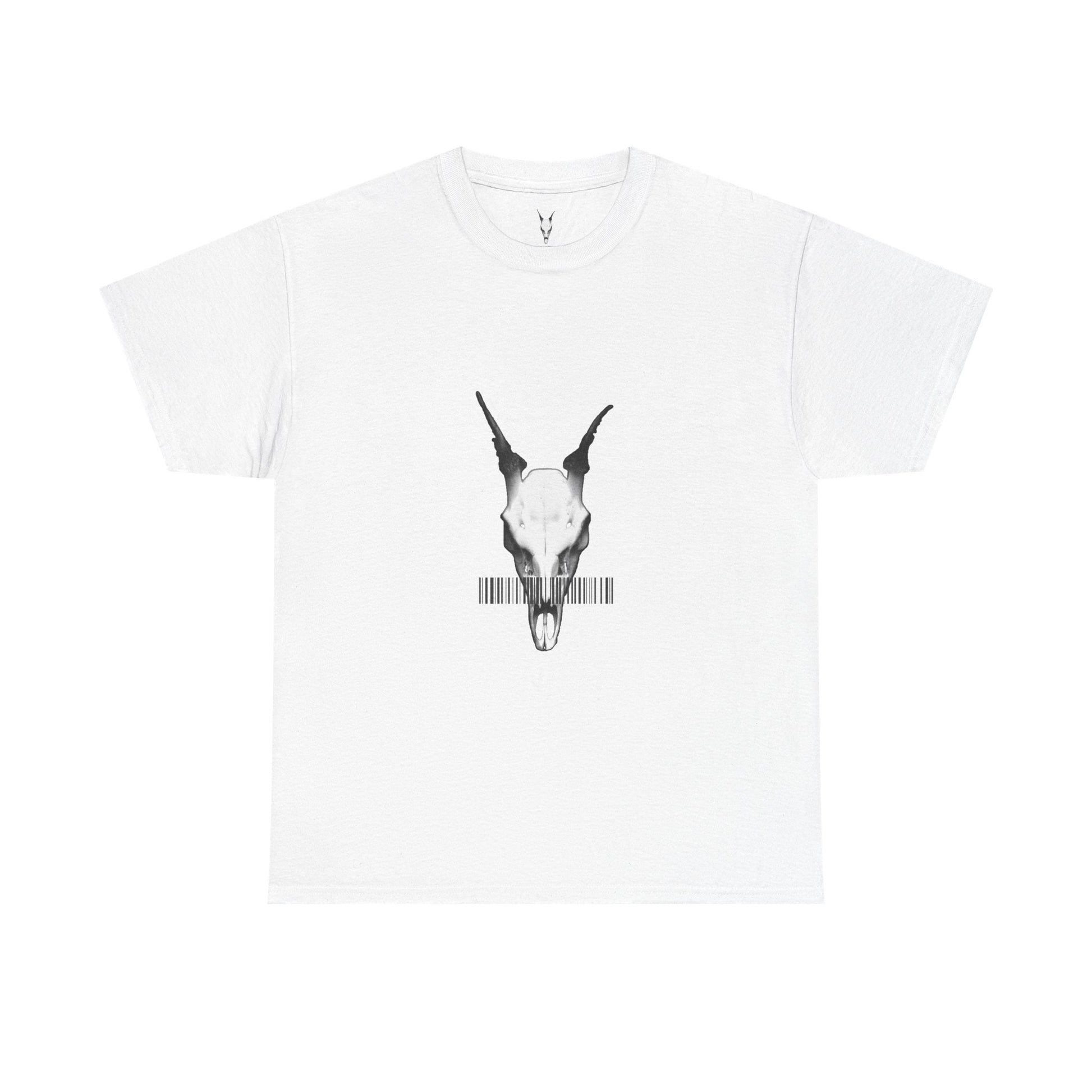 This clean white tee carries a quiet, slightly eerie energy — a minimalist animal skull on the chest and a subtle circular logo on the back. Lightweight but sturdy, the shirt feels lived-in from the first wear: soft cotton with a relaxed, boxy silhouette that sits easily over denim or layered under an overshirt. It reads like a small act of rebellion for those who prefer pared-back graphics and thoughtful symbolism. Wear it to late-night shows, gallery openings, or while wandering the city — it holds up visually and physically, aging with you as the print softens and the cotton relaxes.